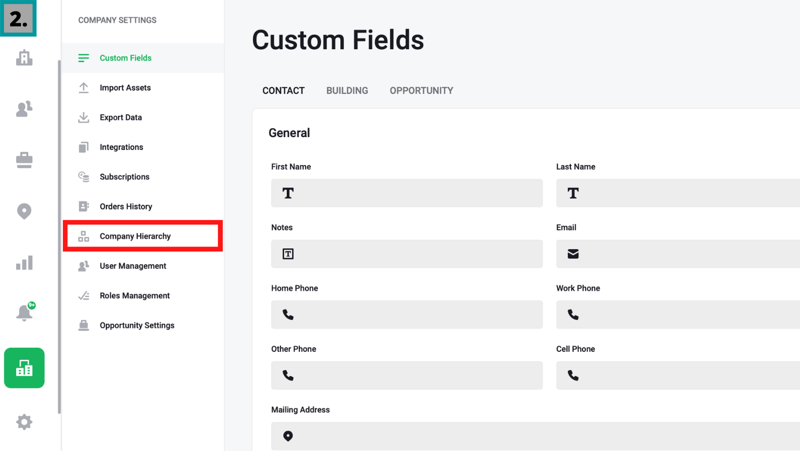 2. Seleccionar jerarquía de empresa (Company Hierarchy)