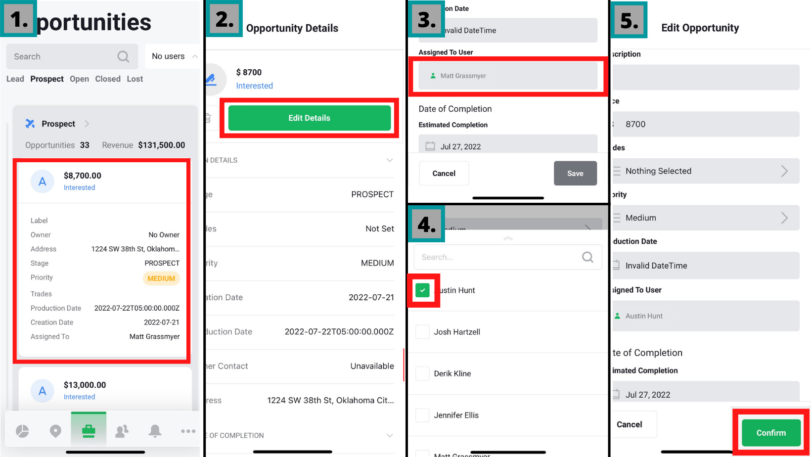 Mobile App Select Opportunities along the bottom-hand bar Refine search Opportunity Status: Swipe through the Statuses Filter by User: In the "Filter Specific Users" bar, select Users Filter by Key Word: In the "search" bar, filter by a key word ...
