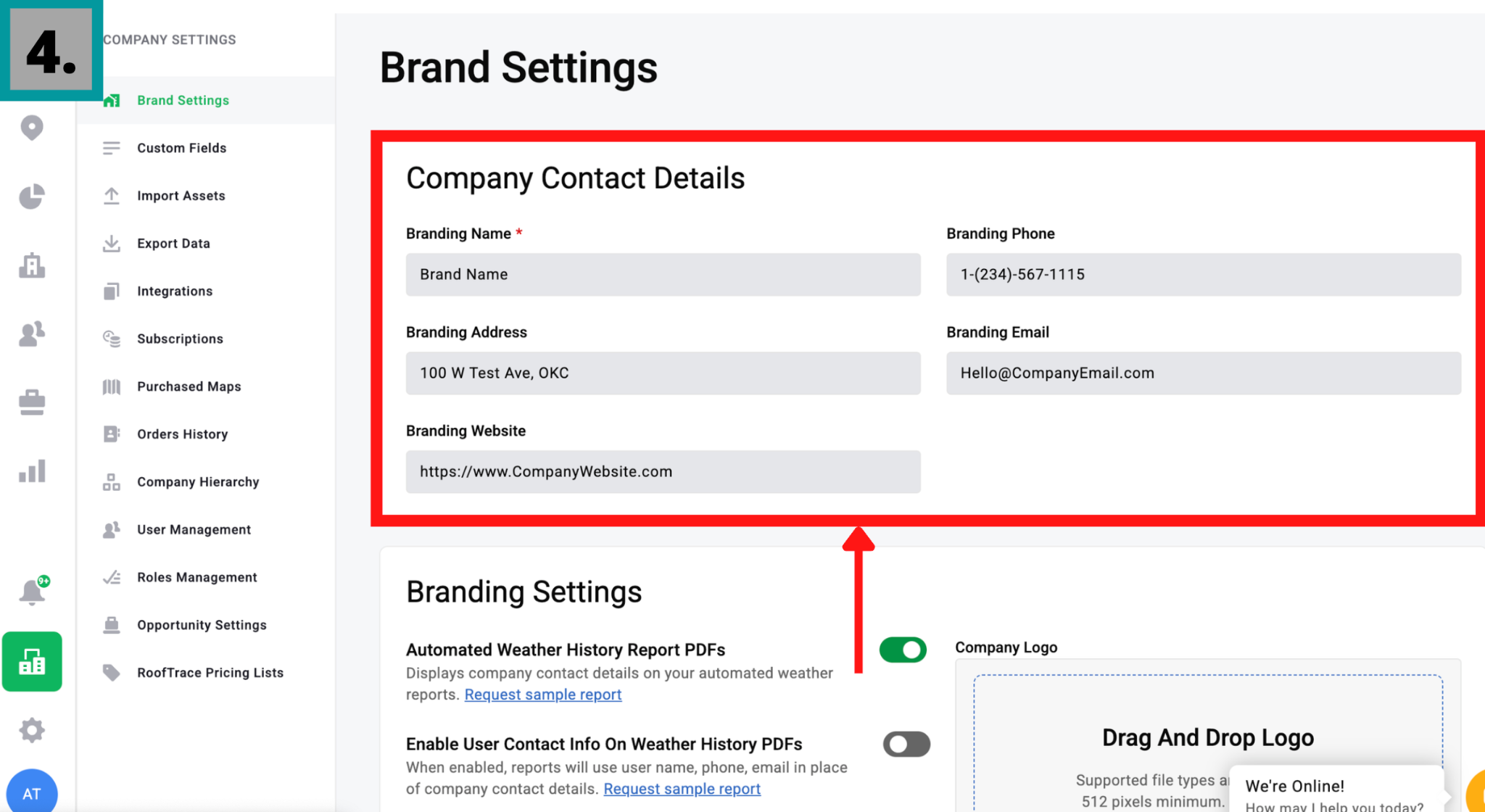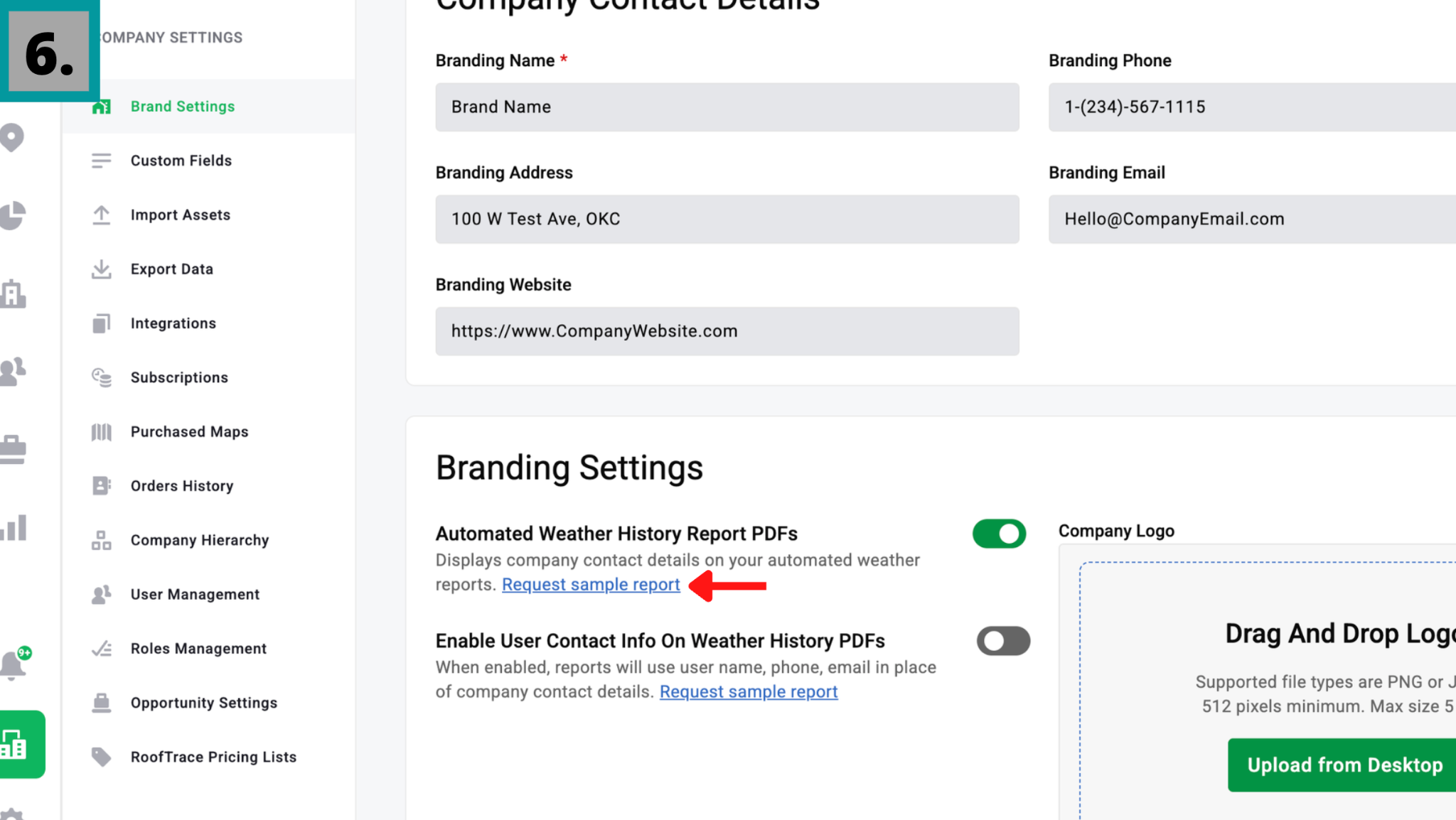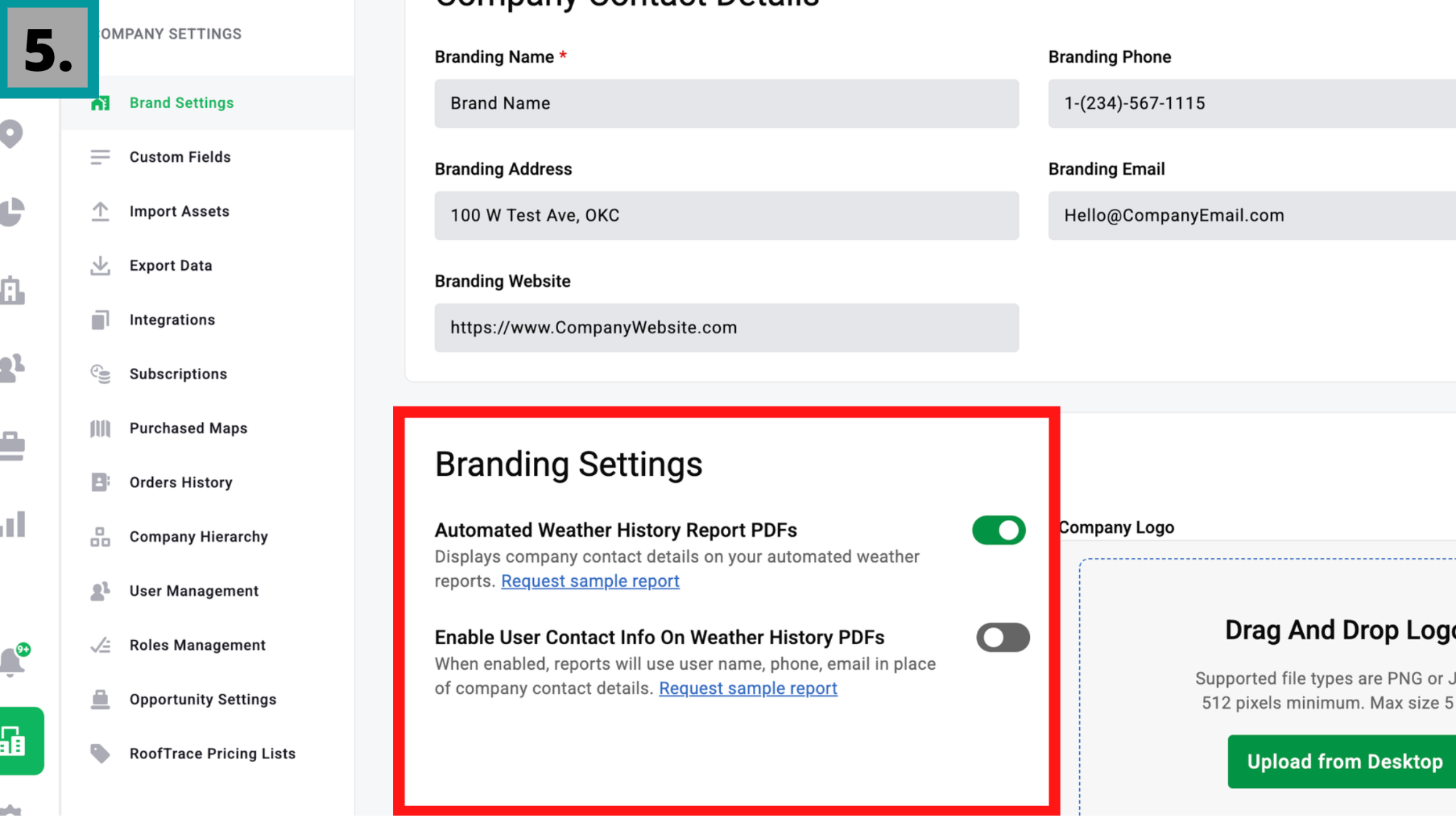 Access and Permissions: Admins have full access to the new Brand Settings tab and may upload logos and manage company details. Instant Impact PDF Creator users are able to download Weather History Reports that include the company’s branding.