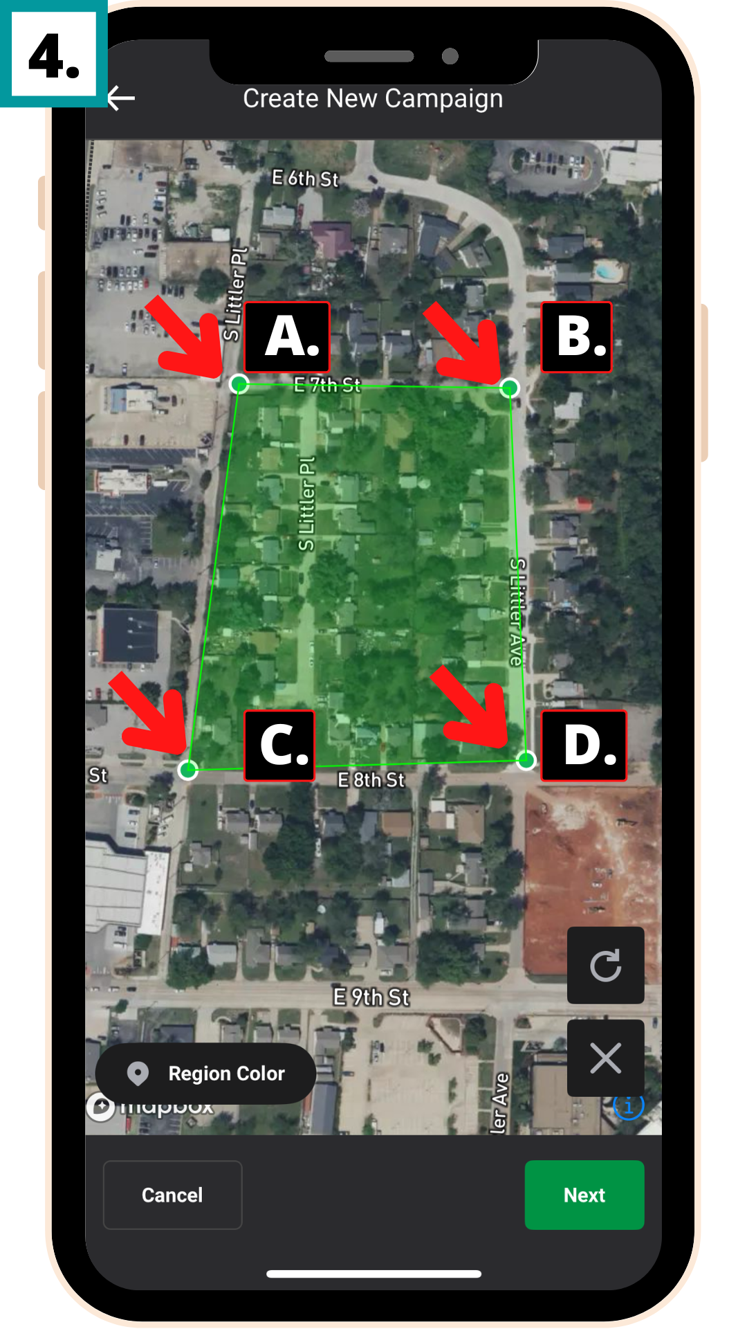 Using the map, click at least three points to draw the campaign *to complete the campaign, click the first point