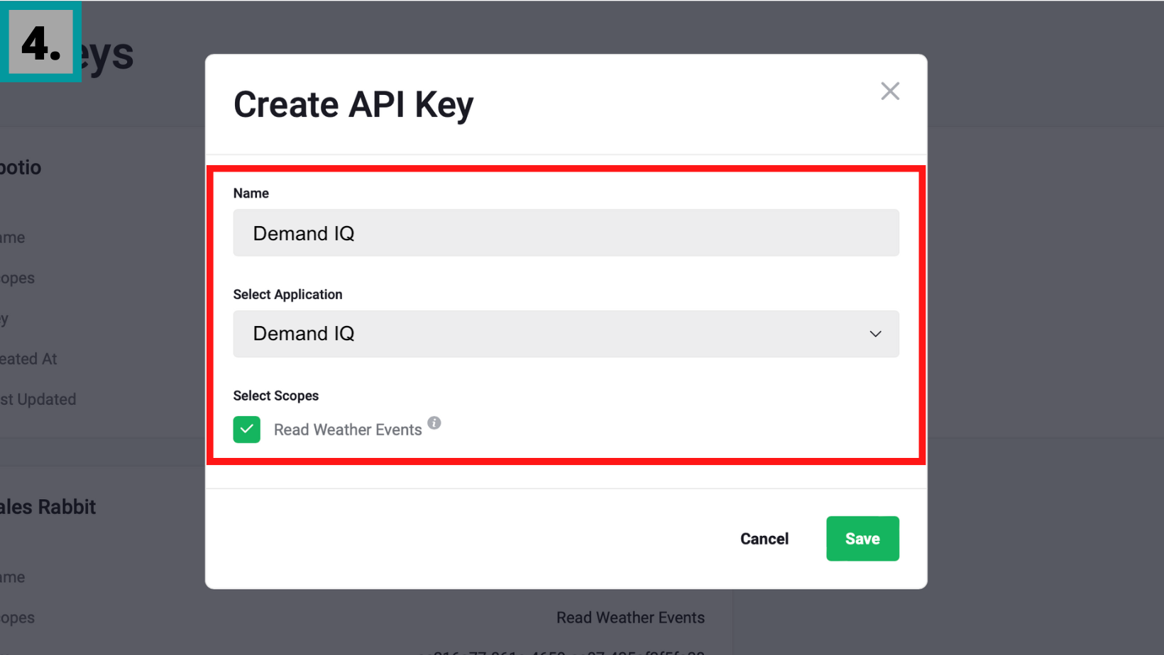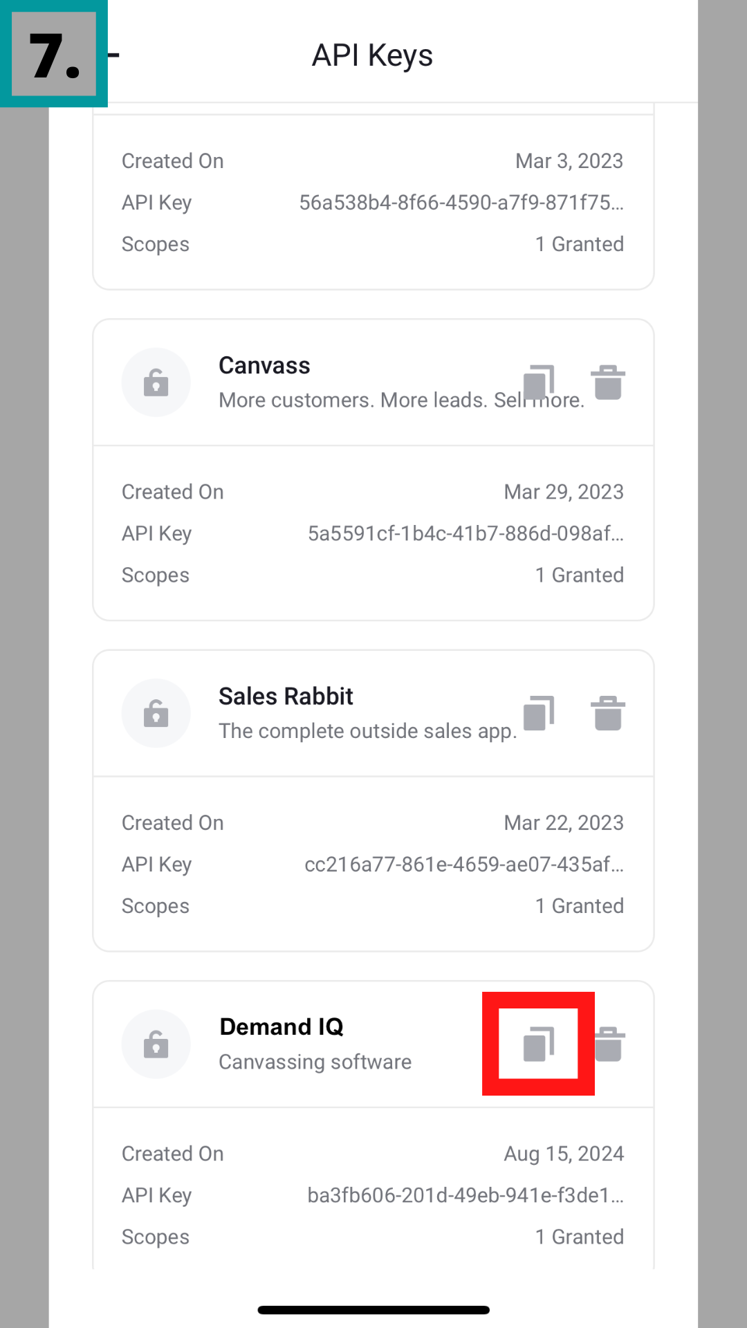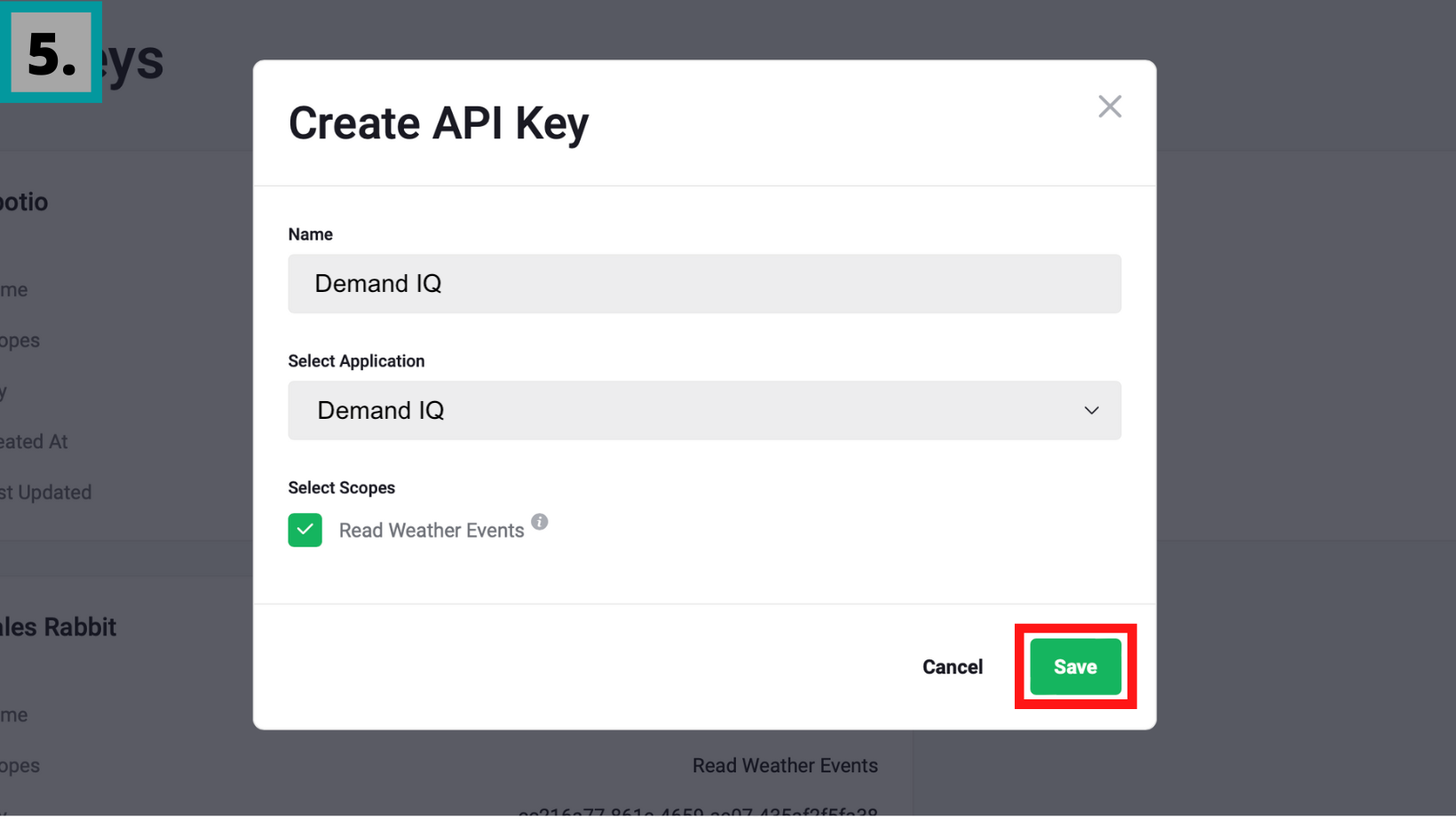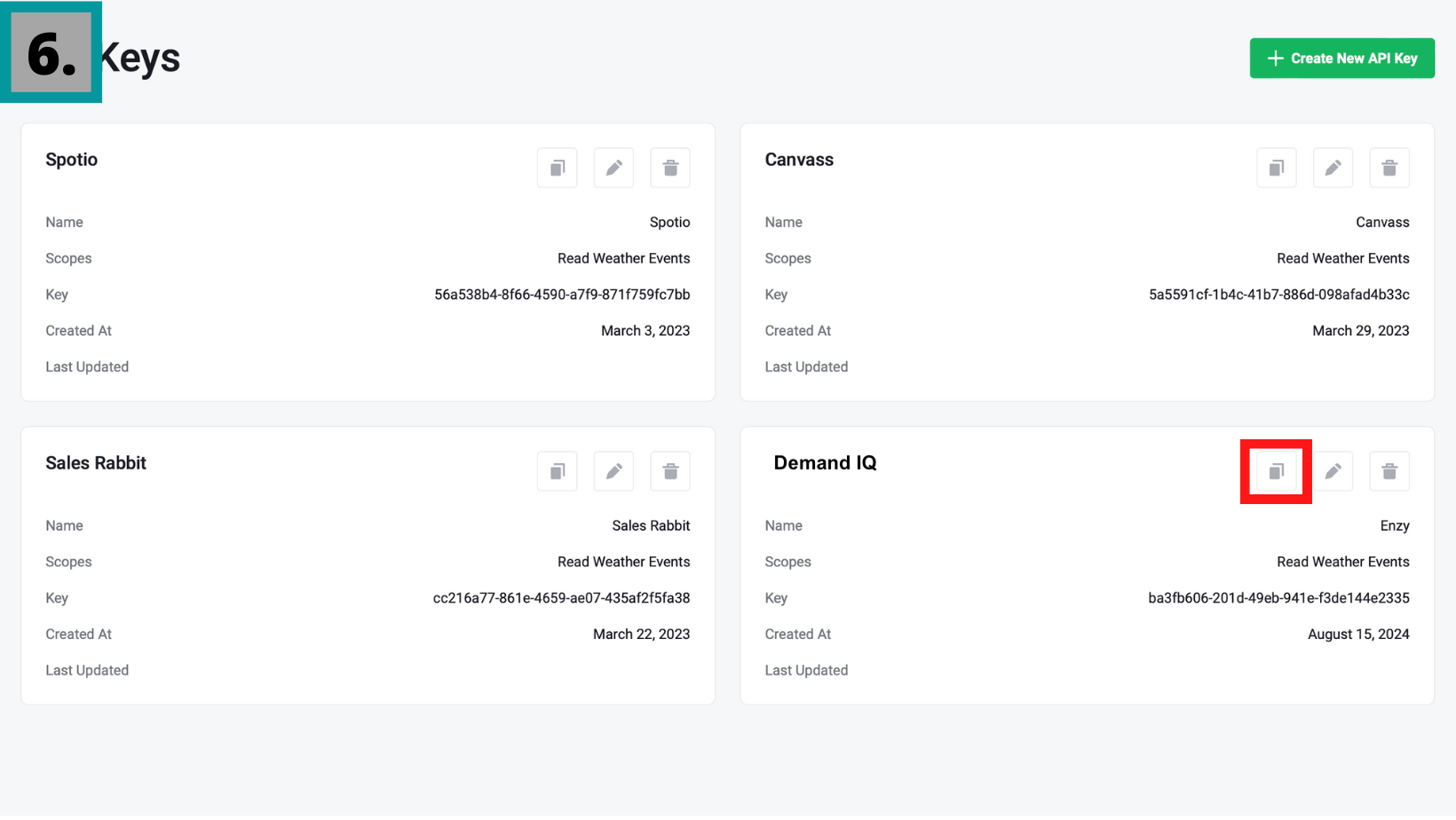 7. Copy the key and paste the API Key into the Demand IQ settingsUse this guide to finish setup in Demand IQ: HailTrace Integration Guide