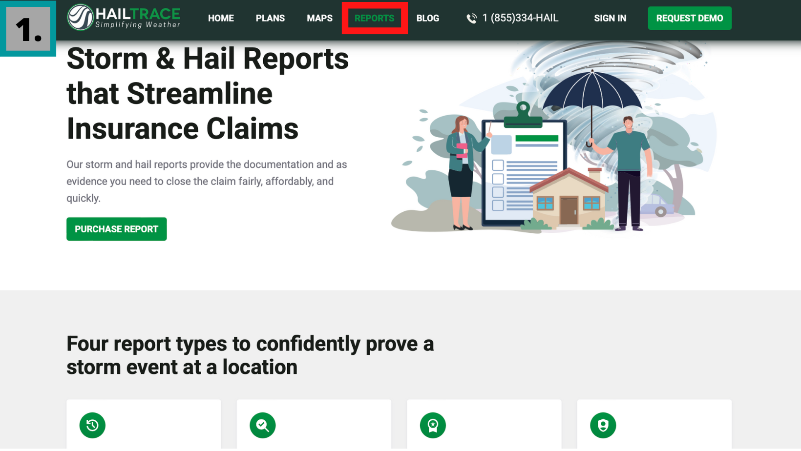 3. Sign into your HailTrace account or create a free account by selecting Register.4. Once logged in, you can change the report type if needed.
