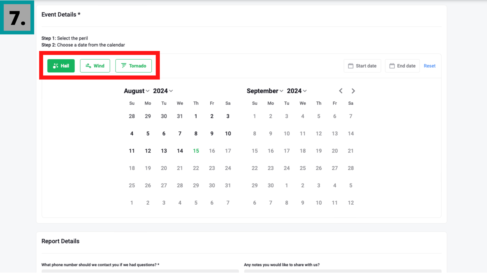 When the date of loss is in question, request this report to confirm the storm details. A Meteorologist will analyze the selected date (or date range) and verify whether a qualifying storm occurred.