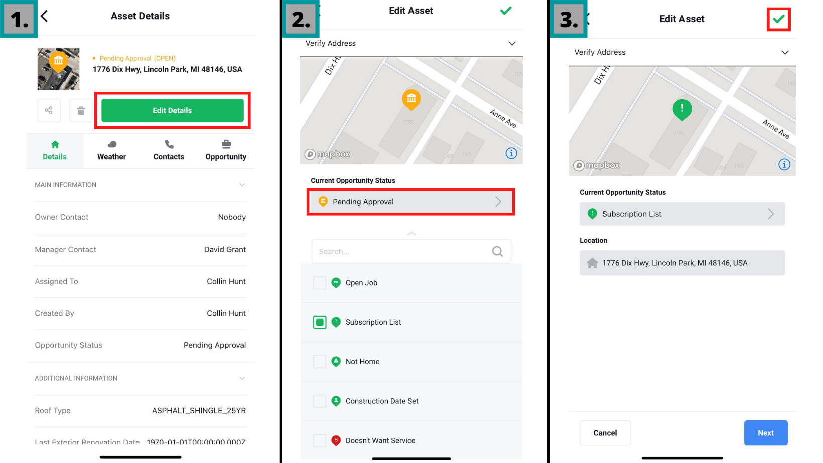 Edit a current opportunity's details when you need to update the current job or claim.There can only be one current opportunity related to an asset. You can either edit or create a new opportunity (archiving the current opportunity). An asset's ...